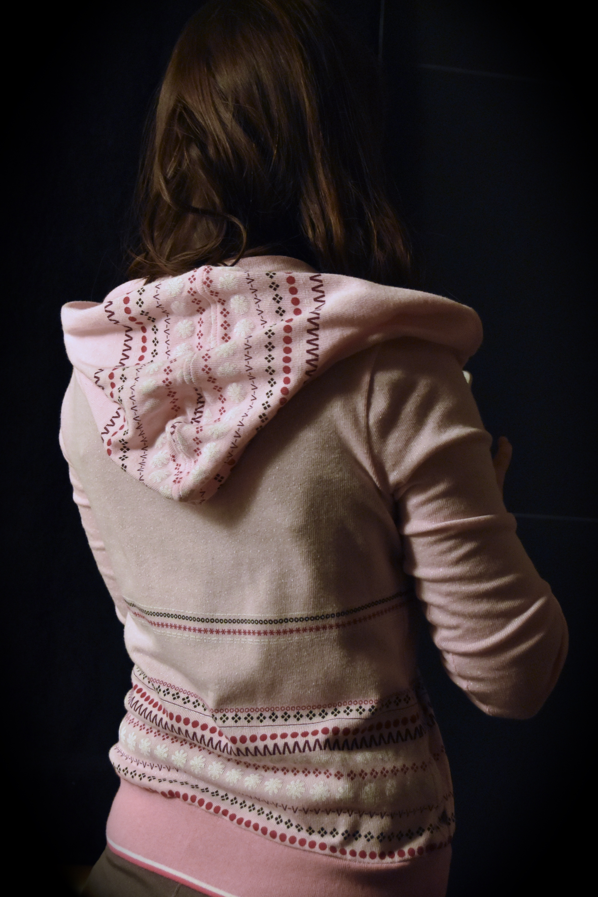 Genäht war der Sho!odie richtig schnell. Ich habe die Kapuze mit einer französischen Naht genäht und auch im Halsausschnitt zum Überdecken der Naht einen Jerseystreifen mitgefasst.